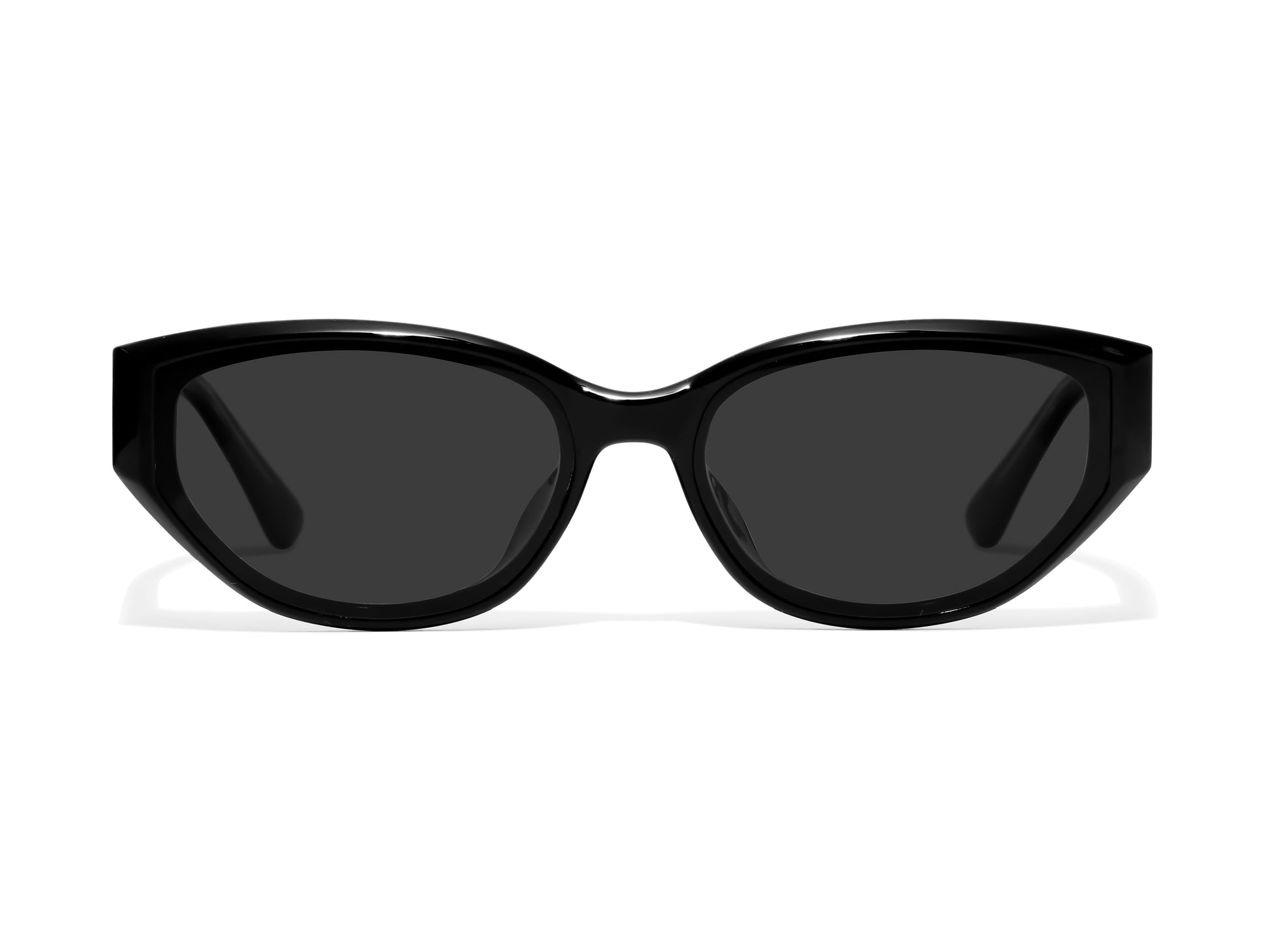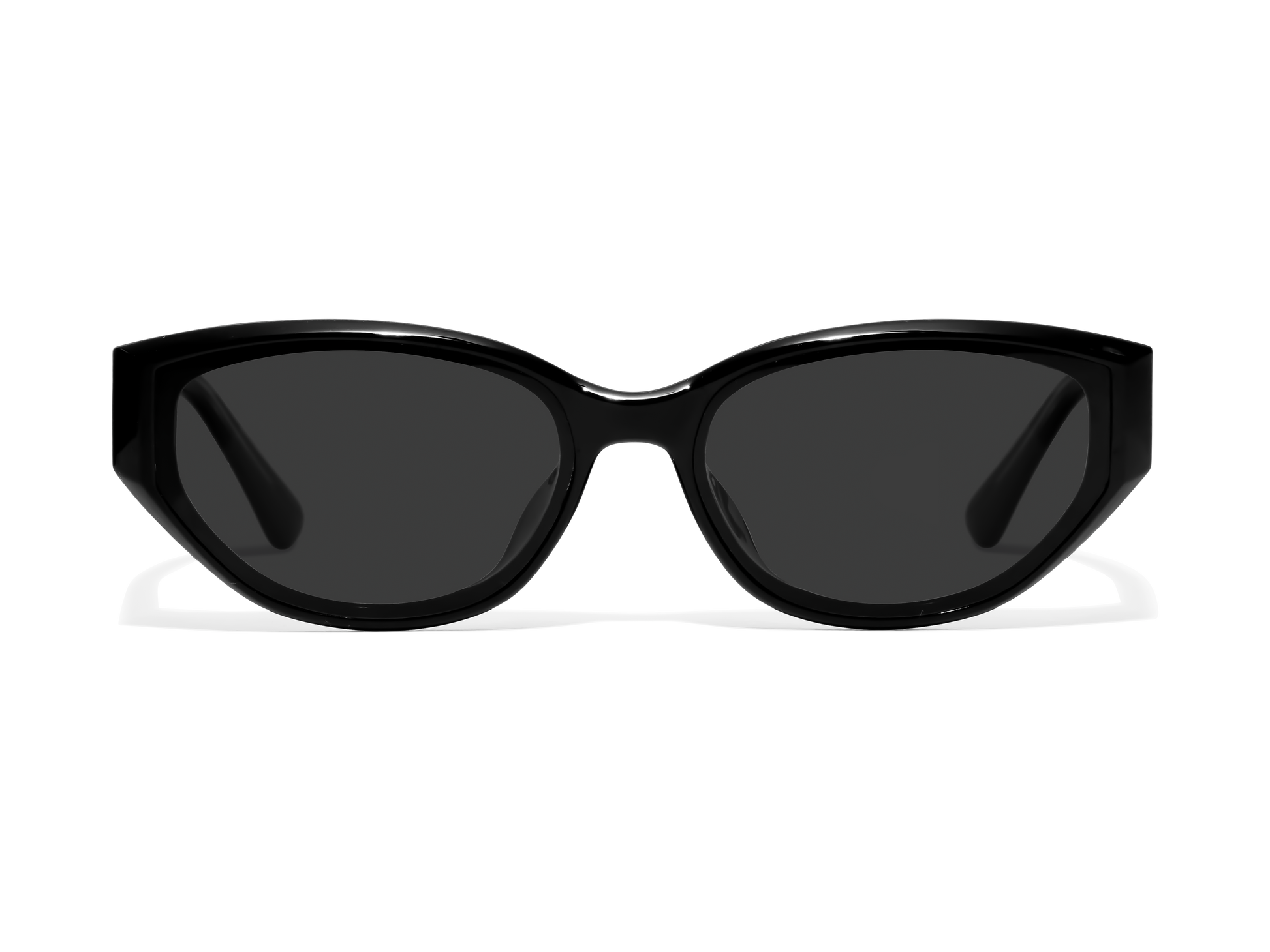 One word: sleek. All-black with a flat-front lens give a clean, modern look while the sculpted bevels that taper into the temples create a subtle wrap-around effect with a slightly sporty profile. Thick temples add boldness and make a confident statement.
