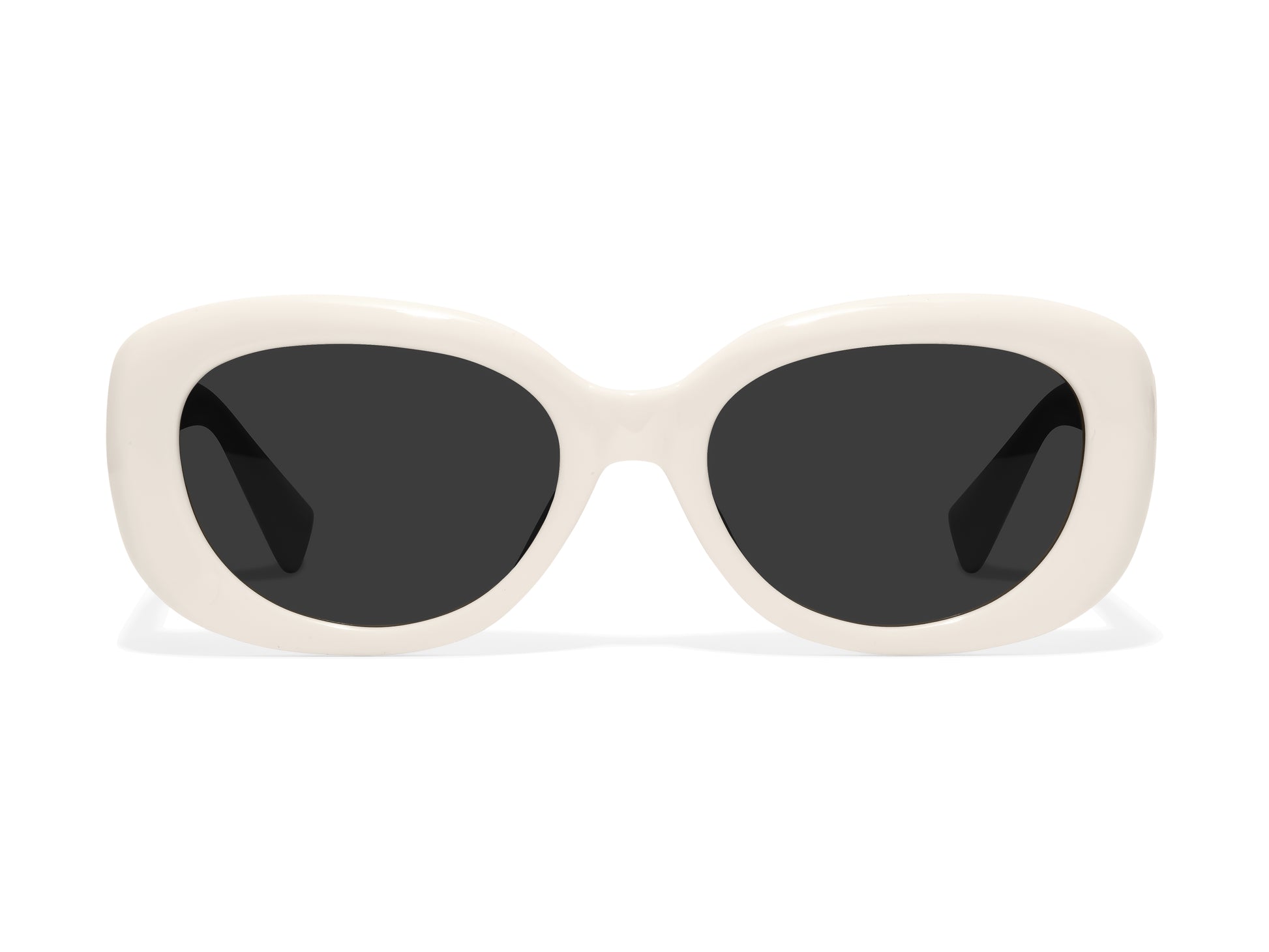 Glossy and slightly oversized, these oval frames come in the perfect shade of creamy white. Bringing a ’60s-inspired new age funk, the rounded edges and wide temples add a luxe touch, while the silhouette stays easy-to-wear for everyday. Pairs just as well with bold looks as it does with minimalist ones.